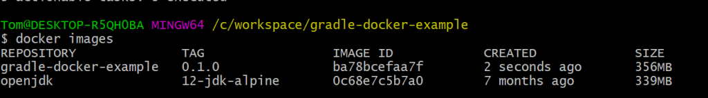 ./gradlew dockerAll done? Run docker images to see that your new image has been built.