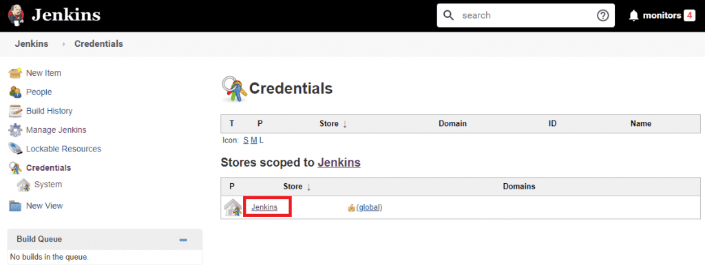 Let's add our Docker Hub credentials into Jenkins, by navigating through the somewhat long-winded following series of pages...