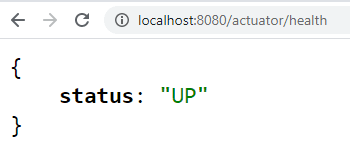 Awesome! Let's hit the application's http://localhost:8080/actuator/health endpoint just to make sure:
