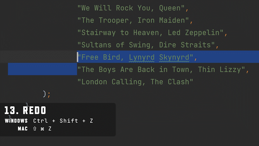 | 13. Redo | Ctrl + Shift + Z | ⇧ ⌘ Z |