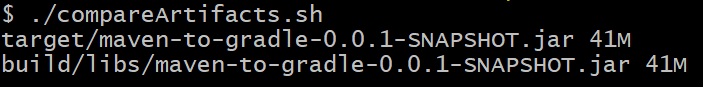 Add the following script to compareArtifacts.sh. It will compare the size of the built artifacts in Maven's target and Gradle's build directories.