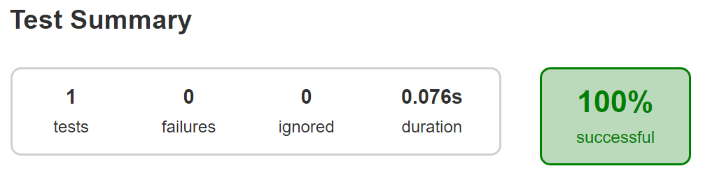 }Run ./gradlew test again and the test report should now look much better: