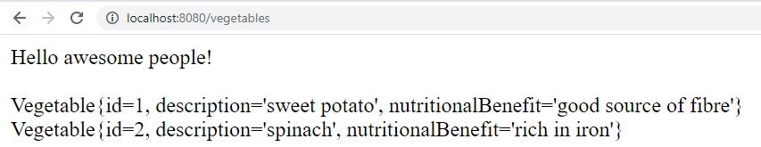 Looks good! ✅ How about http://localhost:8080/vegetables?
