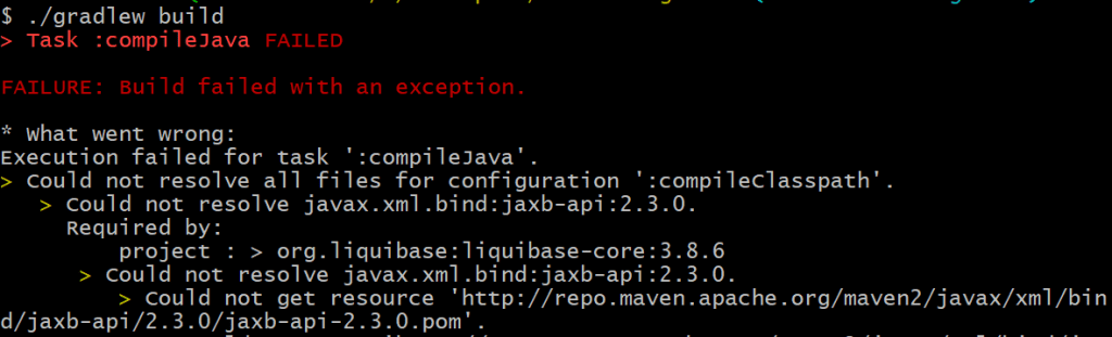 Here's an example of an error you might see when using certain versions of Gradle.