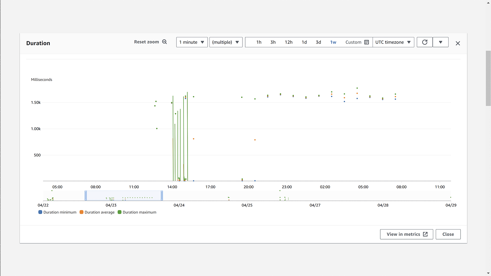 To monitor your function in production, AWS gives you a dashboard to track things like request duration and error rate.