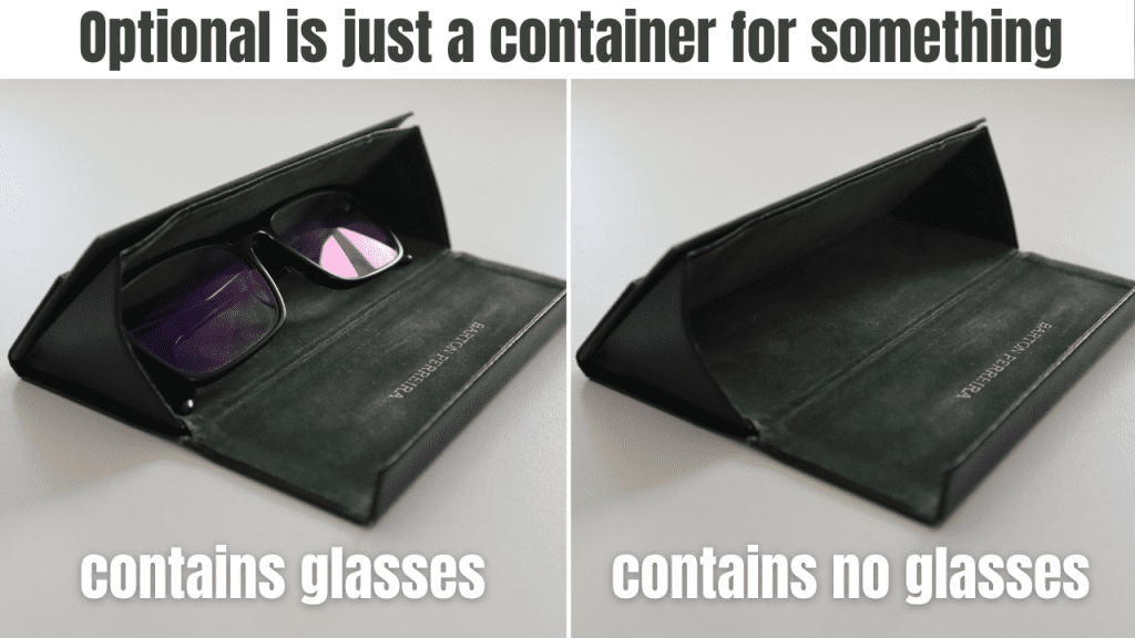 But before we do that, it's helpful to understand that Optional is simply a container for an object. And just like real-life containers, it can have one of 2 states: