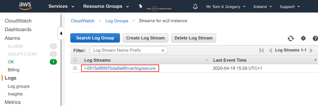 Now you can follow these steps to see the /var/log/secure log file from the EC2 instance in the AWS console.