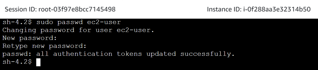 A terminal window opens up allowing you to type in commands as though you had an SSH session open. Let's change the password of ec2-user with sudo passwd ec2-user: