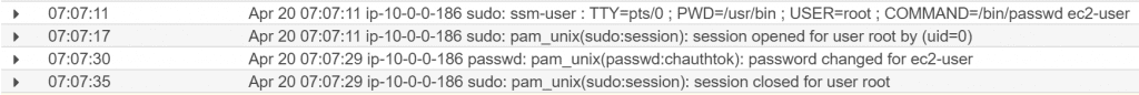 Once you've typed in the new password twice this information should get logged in /var/log/secure and streamed to CloudWatch. Let's take a look. 🤞