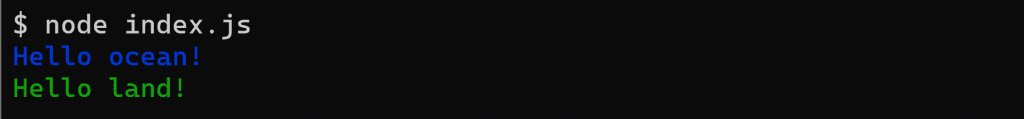 console.log(chalk.green('Hello land!'));- line 1 imports the chalk package