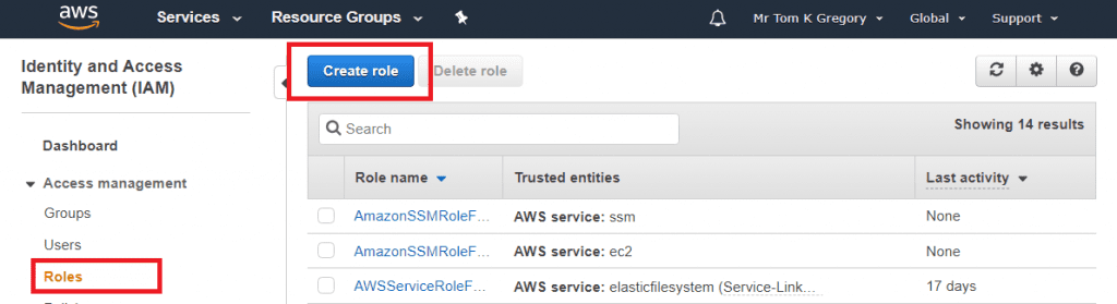In order to call the S3 service, our EC2 instances will need to have an appropriate role configured. Let's create that first, so go to Services > IAM > Roles, and select Create Role: