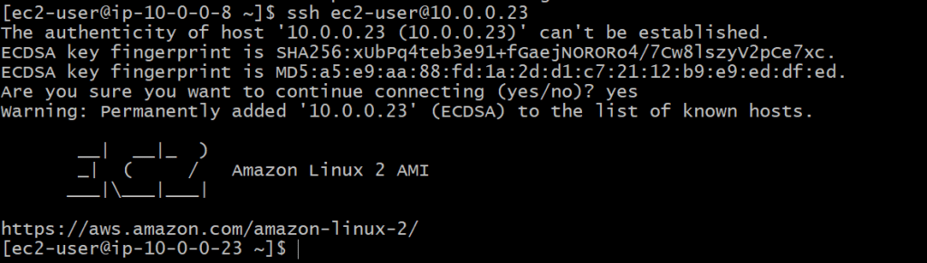 ssh ec2-user@<private-instance-ip>